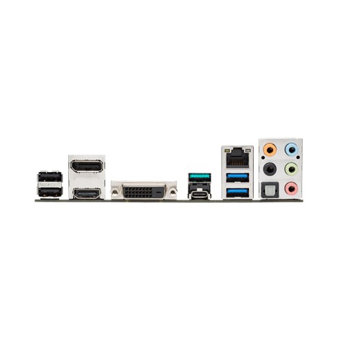 | 背面インターフェース | 1 x DVI-D 1 x DisplayPort 1 x HDMI 1 x LAN (RJ45) port(s) 1 x USB 3.1 Type-C 1 x USB 3.1 (teal blue)Type-A 2 x USB 3.0 (blue) 2 x USB 2.0 1 x Optical S/PDIF out 1 x 8-channel Audio I/O |