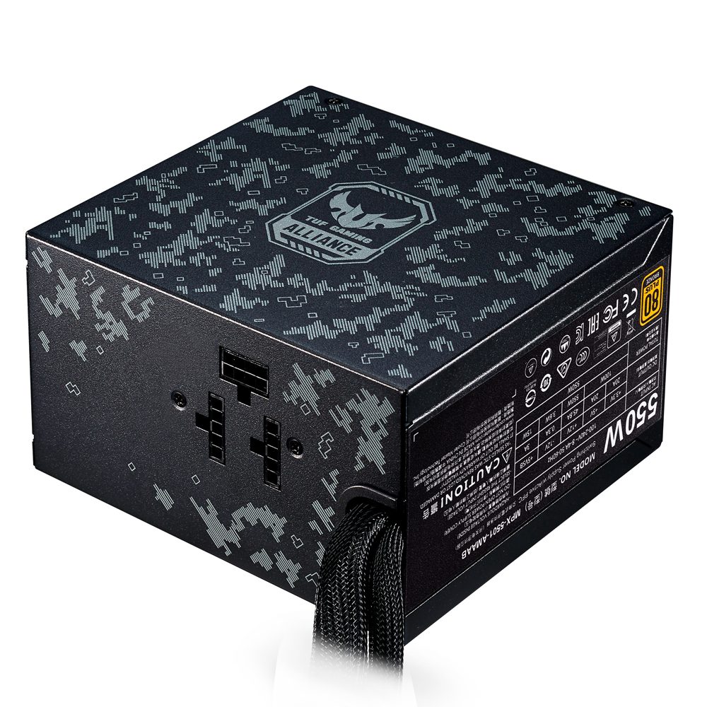 80 Plus Bronze認証、5年間のメーカー保証が付いたセミモジュラー方式電源ユニット「MasterWatt TUF Gaming Edition」。