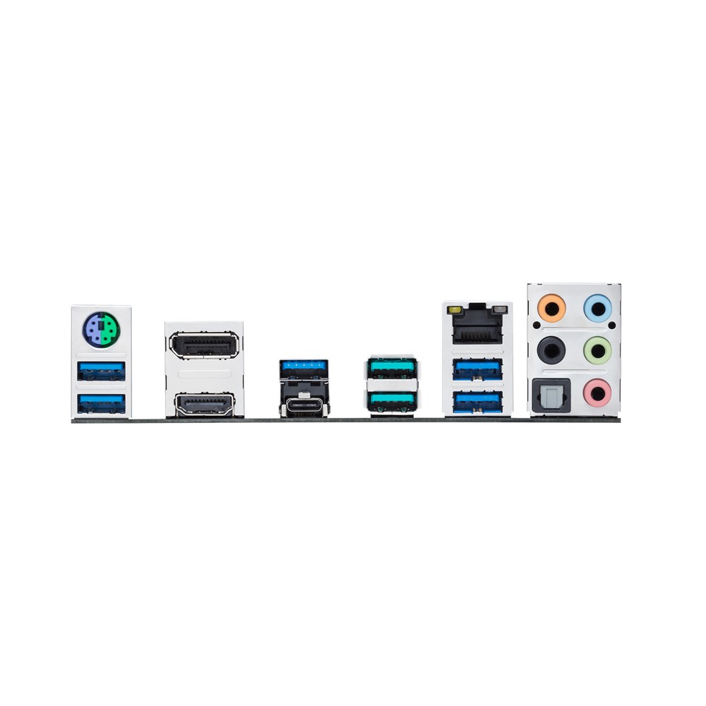 | 背面インターフェース | 1 x PS/2 keyboard/mouse combo port(s) 1 x DisplayPort 1 x HDMI 1 x LAN (RJ45) port(s) 2 x USB 3.1 Gen 2 (teal blue)Type-A, 1 x USB 3.1 Gen 1 USB Type-CTM, 5 x USB 3.1 Gen 1 1 x Optical S/PDIF out 5 x Audio jack(s) |