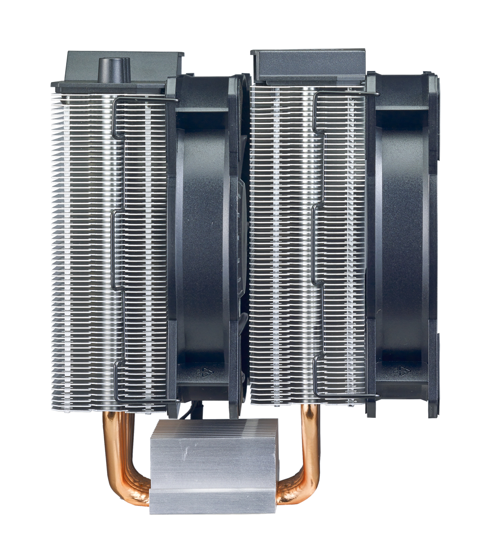 2つのタワー型ヒートシンクに、2基の「MasterFan MF120R RGB」を搭載。ユニークなデザインによって、ヒートシンクの表面積を拡大し、内側と外側に冷却ファンを配置することで、強力な冷却性能を実現しました。