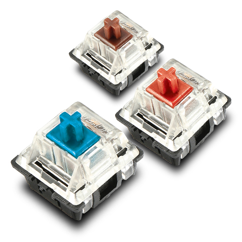 キースイッチには、5000万回以上のキーストロークに耐える耐久性を誇る、GATERONメカニカルスイッチを採用しています。CK550では、打鍵感の異なる赤軸・青軸をそれぞれに採用した2モデルから選ぶことができます。