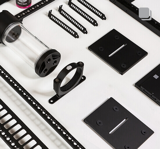 420mmまでのラジエータに対応する、フラットにデザインされた2つのブラケットは、冷却ファンとラジエータを表裏どちらの面にも取り付けることが可能です。ブラケットは、フレームのトップ/フロント/ボトムに取付けることができ、様々な水冷システムに対応します。