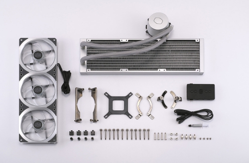 独自の二層構造「デュアルチャンバーポンプ」を採用したMasterLiquidシリーズから、新たにシルバーカラーデザインの上位モデル「MASTERLIQUID ML360P SILVER EDITION」が登場します。アドレサブルRGBを搭載したアルミデザインのポンプによる、高度な冷却性能に加え、3連一体型の冷却ファンを搭載し、より少ない配線で動かすことができます。また、RGBコントローラが付属しているので、マザーボードがRGBに対応していなくても、光のカスタマイズを楽しむことができます。