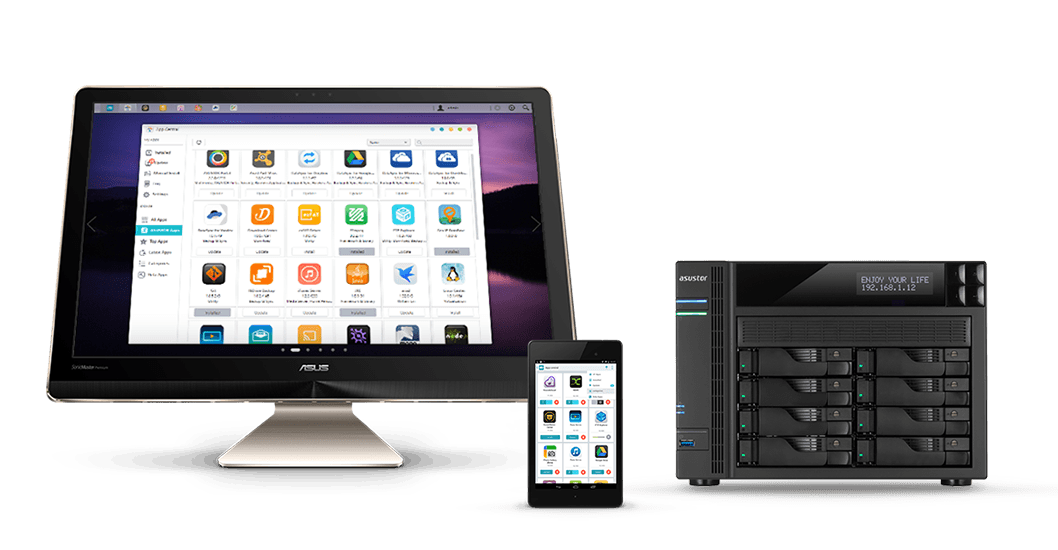 ASUSTOR NAS では、プラットフォームに関係なく、複数のユーザーがアクセスできます。PC、ノートブック、タブレット、スマートフォンなどのデバイスに関係なく、Windows、Mac OS X、Unix タイプのオペレーティングシステムから NAS に簡単に接続できます。