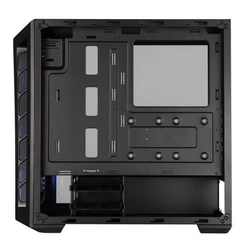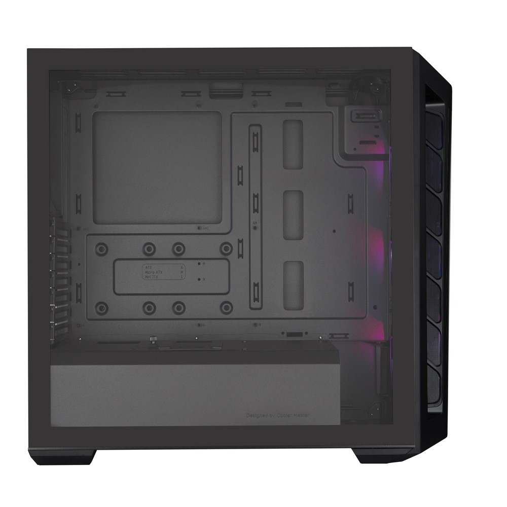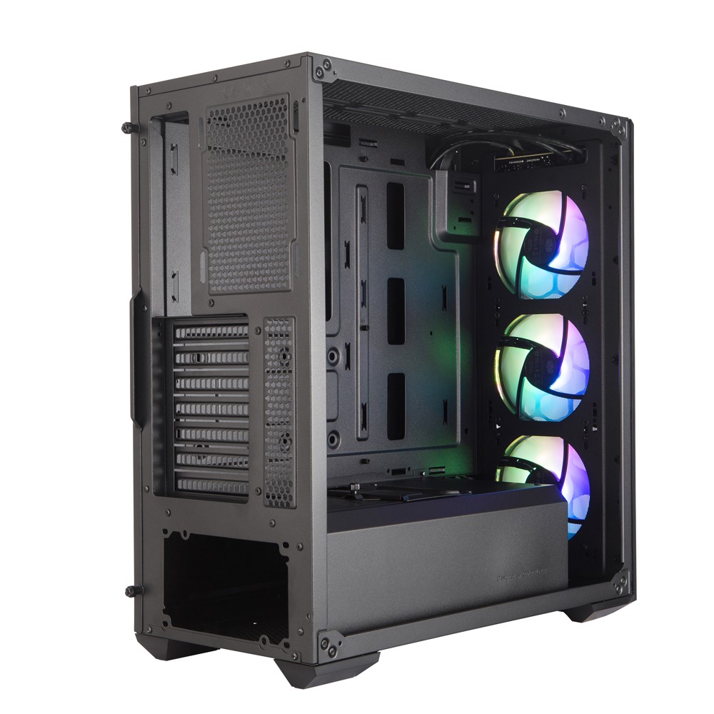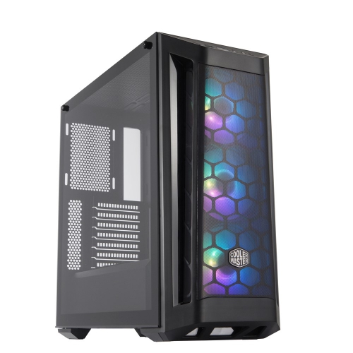 Cooler Master の技術によるファインメッシュをフロントに用いた 「MasterBox MB511 ARGB」は、強力な冷却性能と、アドレサブルRGBのプレミアムなライティング機能を組み合わせたミドルタワーケースです。3基のARGB対応ファンによる、PCのライトアップはもちろん、フロントとトップにメッシュパネルを採用し、負荷のかかるゲーミングマシンも冷却可能な、通気性を備えています。通気性とカスタマイズ性を最大限に高めたことで、ハイエンド構成にも存分に対応可能なゲーミングケースを実現しました。