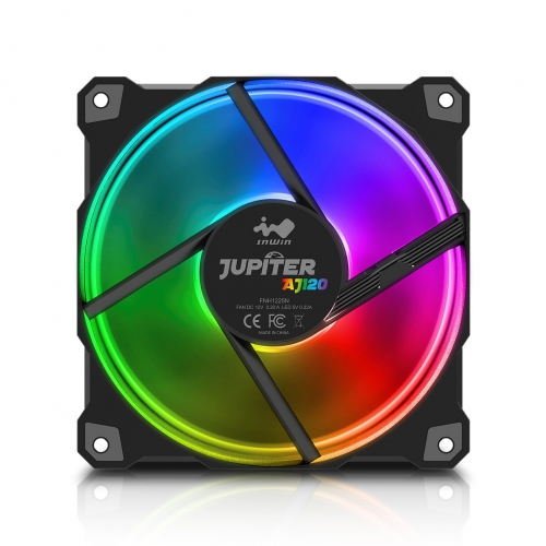 IN WINのケースファン「Jupiter AJ120」は、独自設計による7枚のブレードを搭載しており、最大風量70.32 CFM・最大静圧2.62mm/H2Oの効果的なエアフローを実現します。ファンには耐久性の高いスリーブベアリングを採用しています。状況に応じてファンの回転数を制御する「PWMテクノロジー」により、効率的な冷却が可能です。