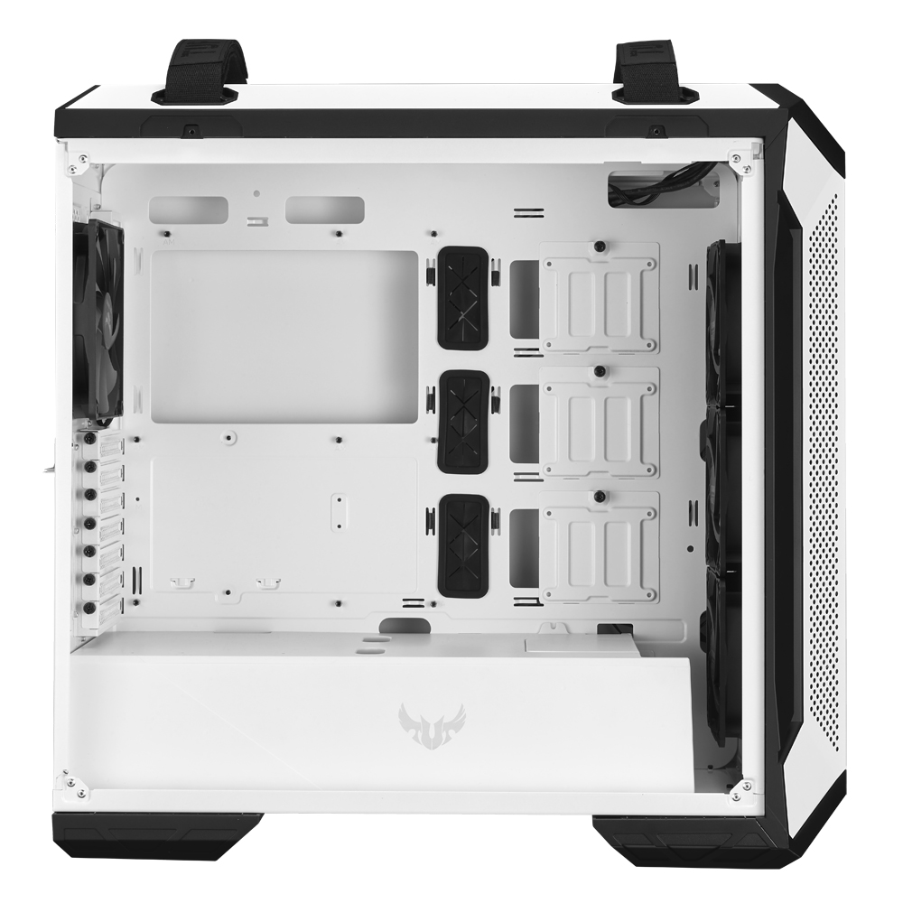 ASUSのTUF Gamingの製品は耐久性を重視した製品シリーズです。TUF Gaming GT501 White Editionでは厚さ1.5mmまでの亜鉛メッキ鋼から作られており、擦り傷やひっかき傷を防ぐ特別なコーティングが施されています。 また、2つの人間工学に基づき、厳しくテストされた綿織のハンドルを備えており、最大30kgまでの完成したPCを安全に運ぶこともできます。