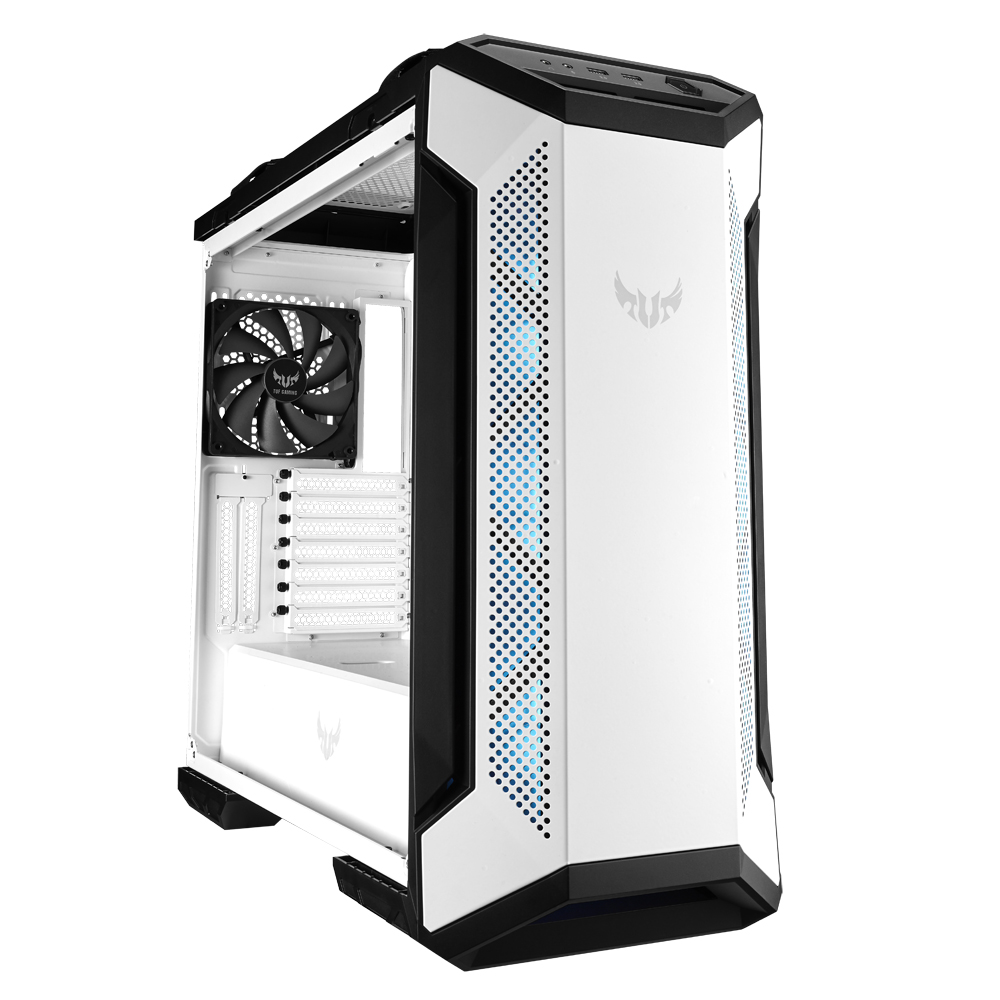 TUF Gaming GT501の120mm Aura Sync RGBファンのトリオは、それぞれ11枚のブレードを搭載し、ターゲットを絞った冷却のための高静圧フローを実現しています。また、高エアフローの140mm PWMファンもあり、より広い範囲の熱除去が可能です。
