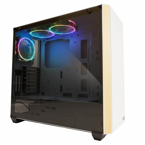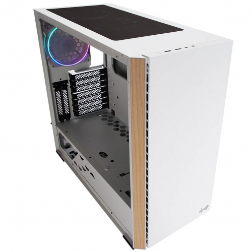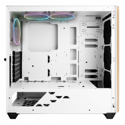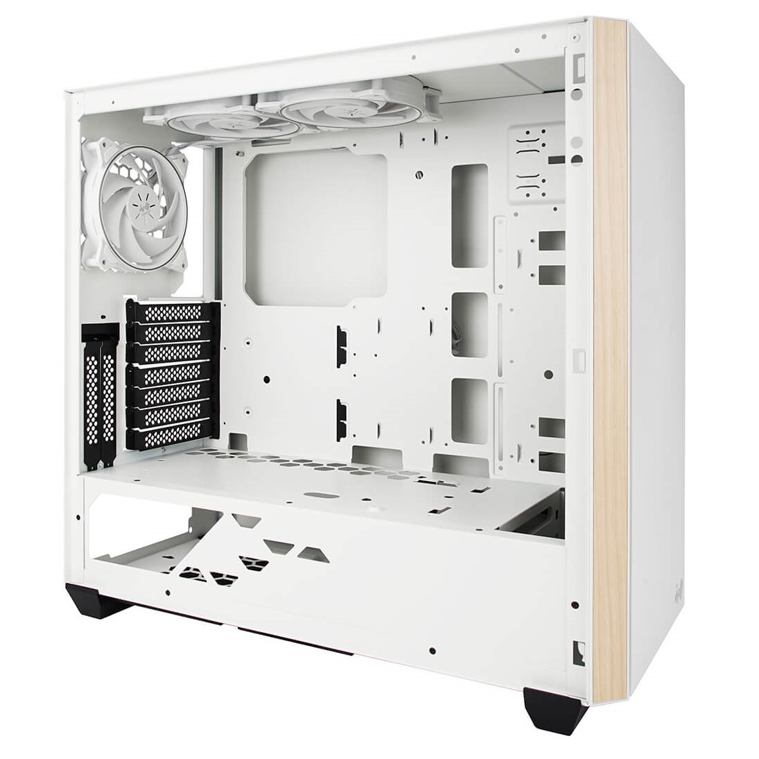 製品名どおり、白がテーマの「216-PureWhite」は、白い内装に加え、ホワイトカラーのSirius Pure ASP 120ファンを搭載し、すっきりとした統一感をもたせています。また、左フロント側面には木目調のデザインを加え、異なる質感を組み合わせながらも、全体的に調和のとれたデザインに仕上げています。*木目調のデザインとなります。天然の木材ではありません。
