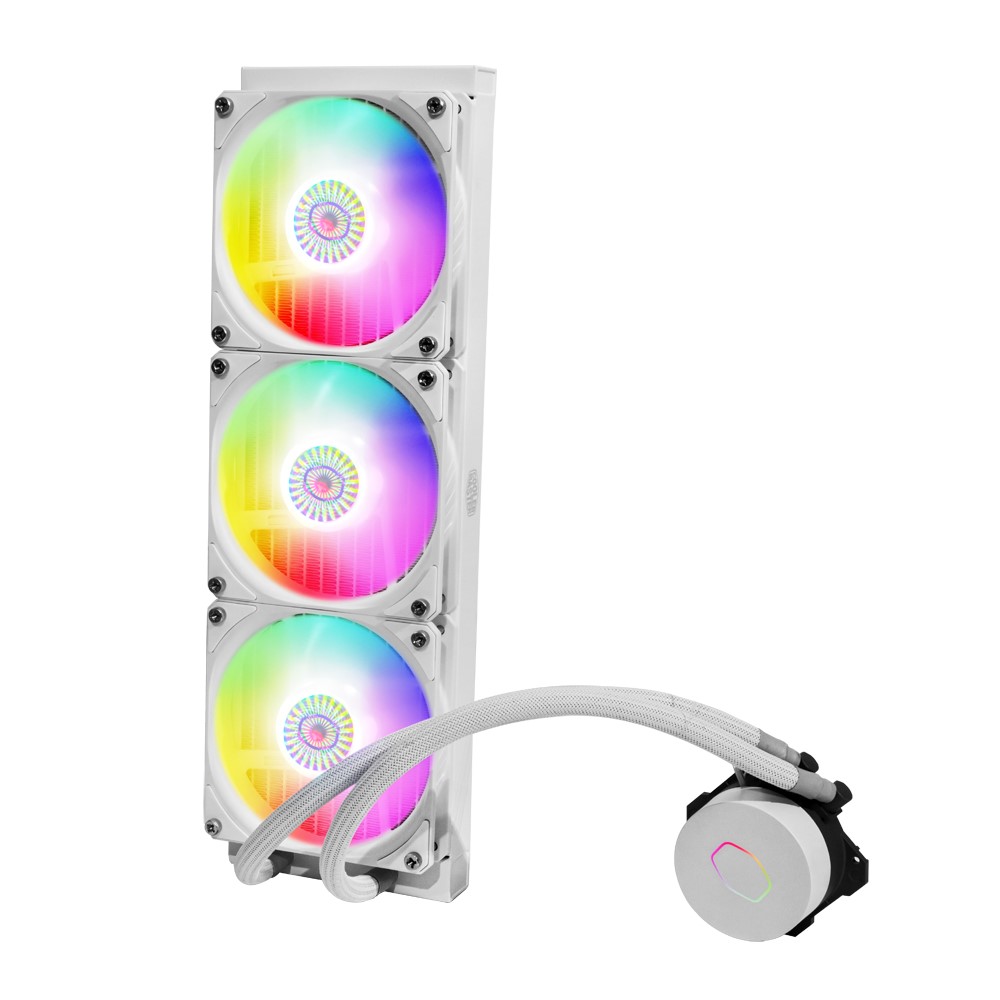 MasterLiquidシリーズから新たに白いカラーリングの MasterLiquid ML240L V2 ARGB White Edition と MasterLiquid ML360L V2 ARGB White Edition の2モデルが登場します。高性能な第3世代デュアルチャンバーポンプに加え、アドレサブルRGBを搭載した新型ファンSickleFlow120 ARGB、従来モデルから表面積を25%拡大したラジエータなどのアップデートにより、高度な冷却性と優れた静音性を実現しています。さらに付属ARGBコントローラーや、ARGB対応マザーボードに接続することでカラフルなイルミネーションを楽しむことができます。