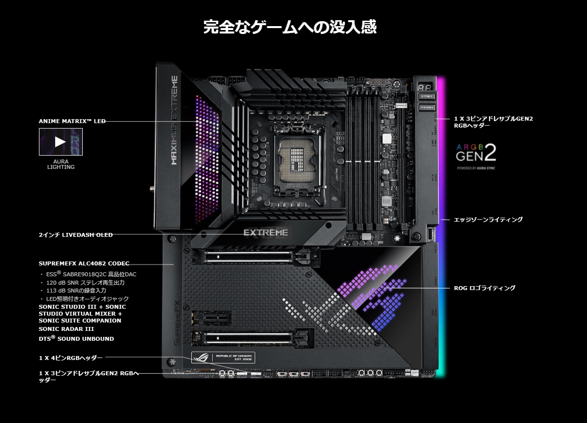「ROG MAXIMUS Z690 EXTREME」は、Intel Z690チップセットを搭載した、「ROG MAXIMUS」シリーズマザーボードの最上位モデルです。