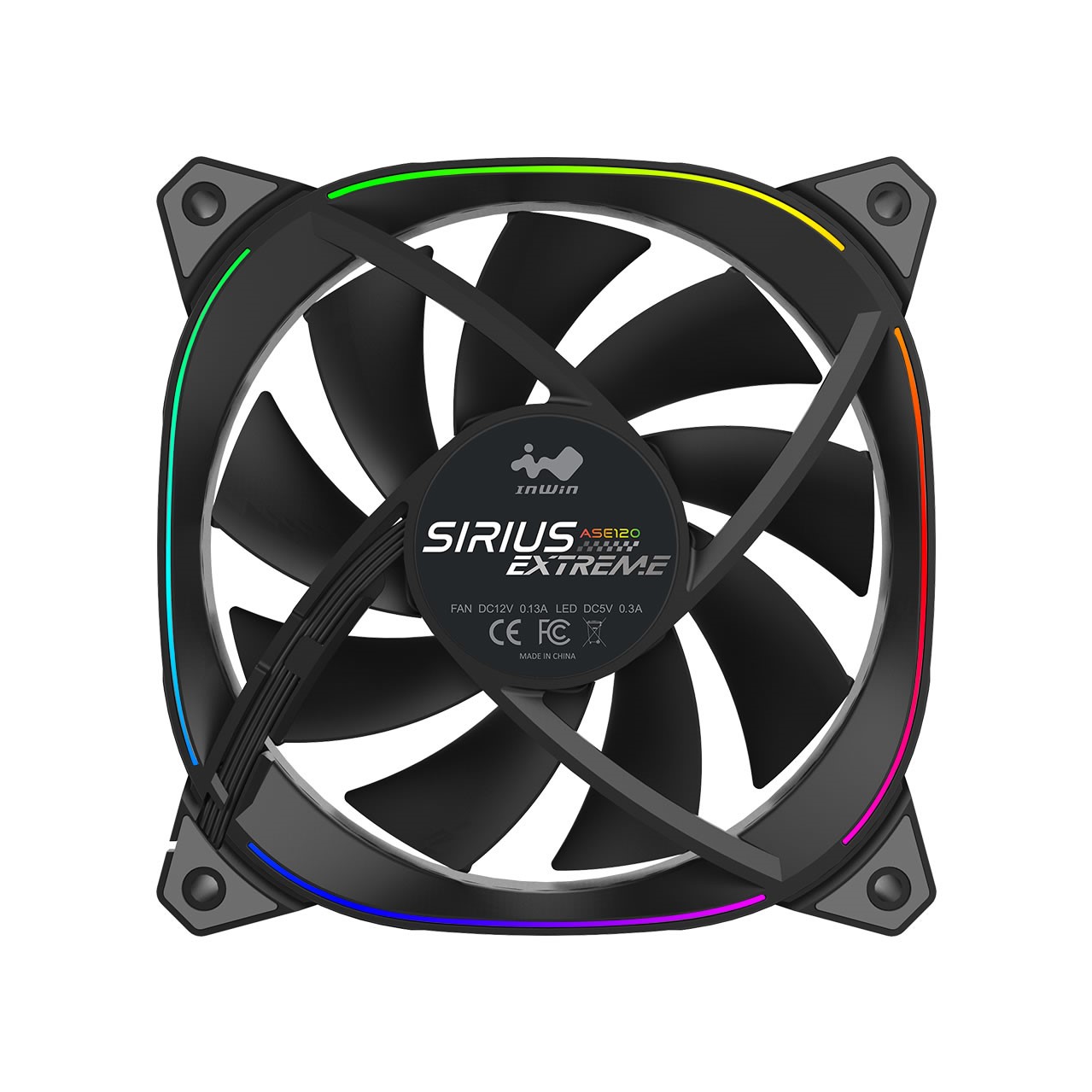 IN WINのケースファンに、ブラックカラーの「Sirius Extreme ASE120」、ホワイトカラーの「Sirius Extreme Pure ASE120P」があらたに加わりました。製品名に「Sirius」を冠するケースファン「Sirius Loop ASL120」「Sirius Pure ASP120」と同じく、両面のフレームにアドレサブルRGB LEDを配置していますが、丸みを帯びた四角形である「Squoval」デザインを取り入れており、これまでのシリーズとはデザイン面において一線を画しています。