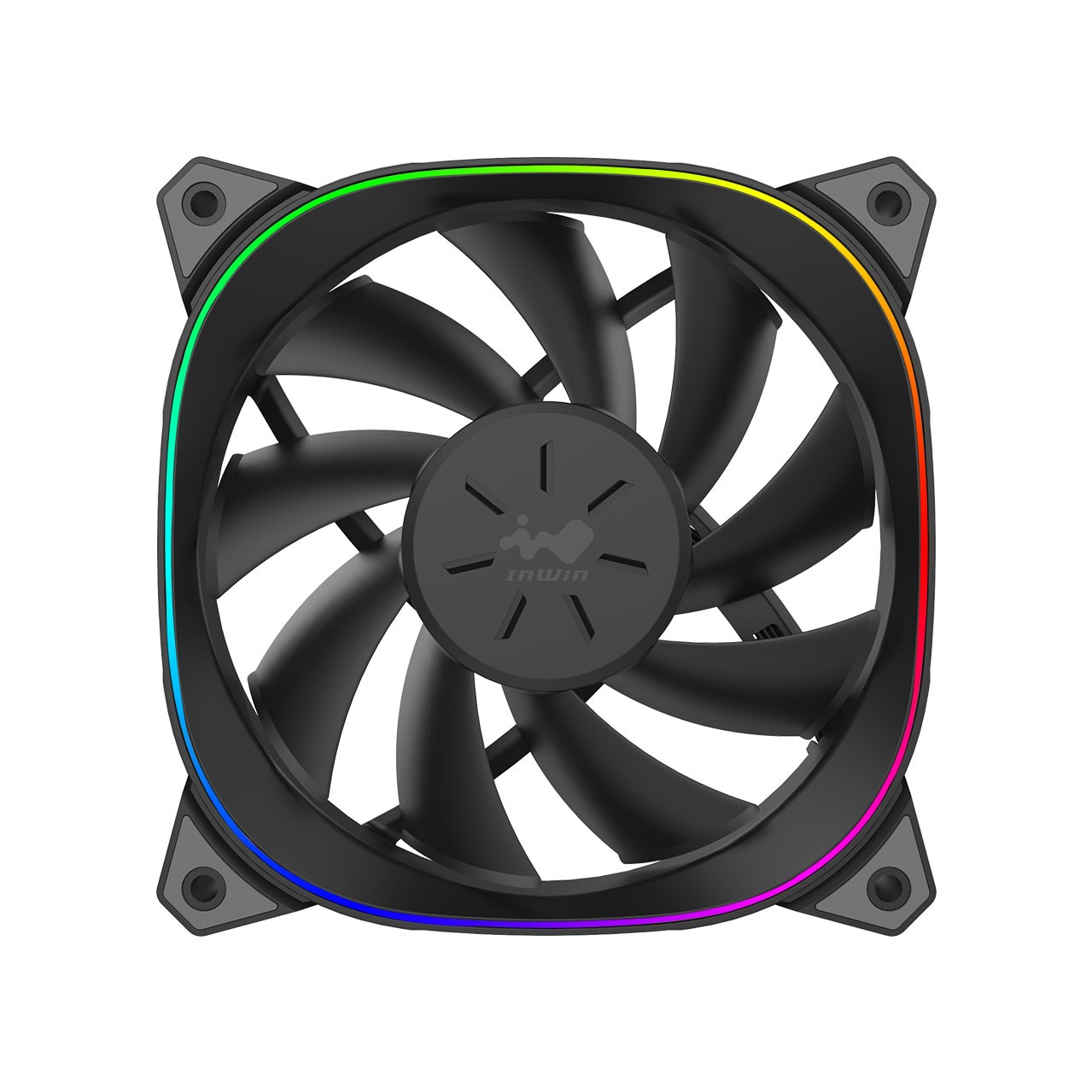 これまでのIN WINのケースファンとは異なり、丸みを帯びた四角形の「Squoval」デザインを採用。フレーム両面に沿って配置されたアドレサブルRGB LEDによって独特なライティング効果を生み出します。