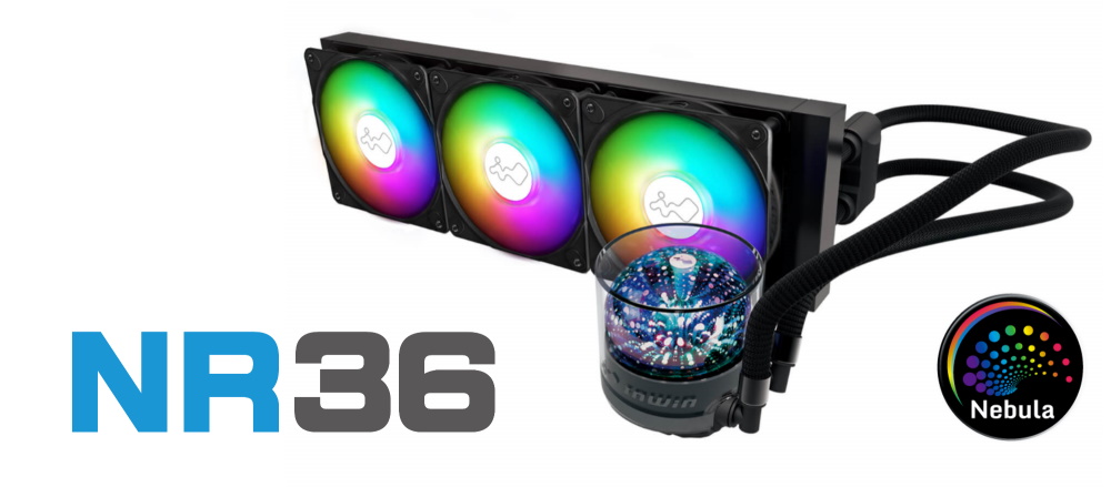 IN WINの水冷クーラー「NR」シリーズより、「NR24」「NR36」が登場。水冷ブロックに星雲のように輝く「Nebula」ライティングを搭載しています。また、ラジエーターファンとして、最大風量82.96CFM、最大静圧2.31mm/H2Oのパフォーマンスを発揮するARGBファン「Luna AL120」を採用。ライティングは対応マザーボードに同期可能です。