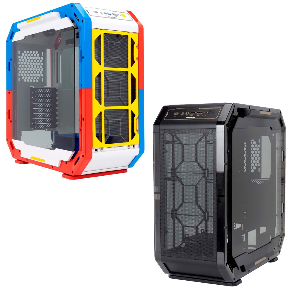 19個のパーツで構成されたモジュール式 組み立て型ミドルタワーケース「AIRFORCE」。白をベースに赤・青・黄色のカラフルなアクセントを加えた「ジャスティスホワイト(Justice White)」、黒を基調としたシックなモデル「ファントムブラック(Phantom Black)」の2モデルをラインナップ。