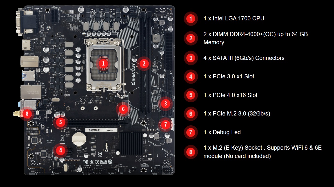 BIOSTARより、第12世代インテルCoreプロセッサーをサポートするIntel B660チップセットを採用するMicroATXマザーボード「B660MX-E」が登場。