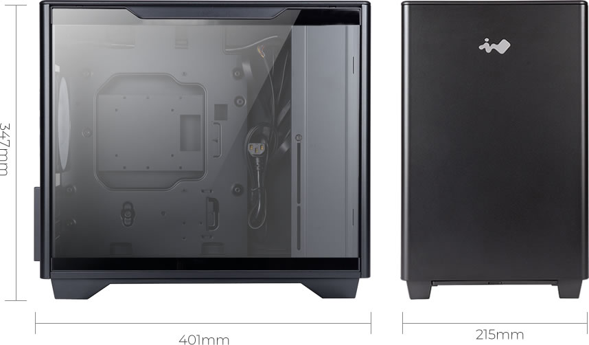 トップとボトムはメッシュ仕様、電源ユニットはフロント部への配置となるよう設計されているため、ボトムからトップへかけてのスムーズなエアフローが実現。トップには240mmラジエーターも設置可能です。また、リアにはIN WINの薄型ケースファン「Mercury AM120S」を1基標準搭載しています。