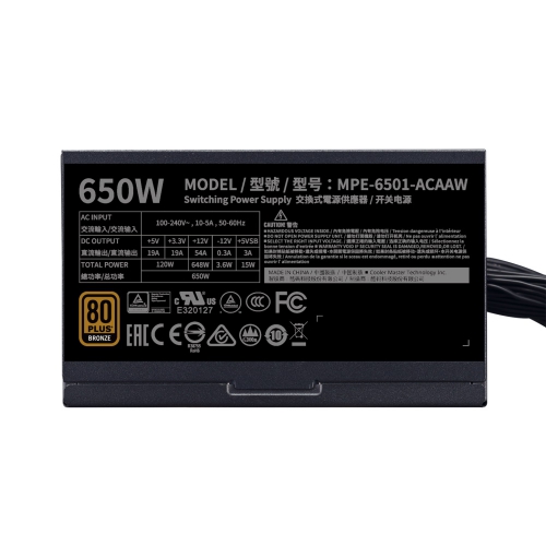 Cooler Masterの「MWE Bronze V2 FR 650W」は、標準的な負荷で平均85%の変換効率を実現し、80PLUS Bronze認証を取得しています。
