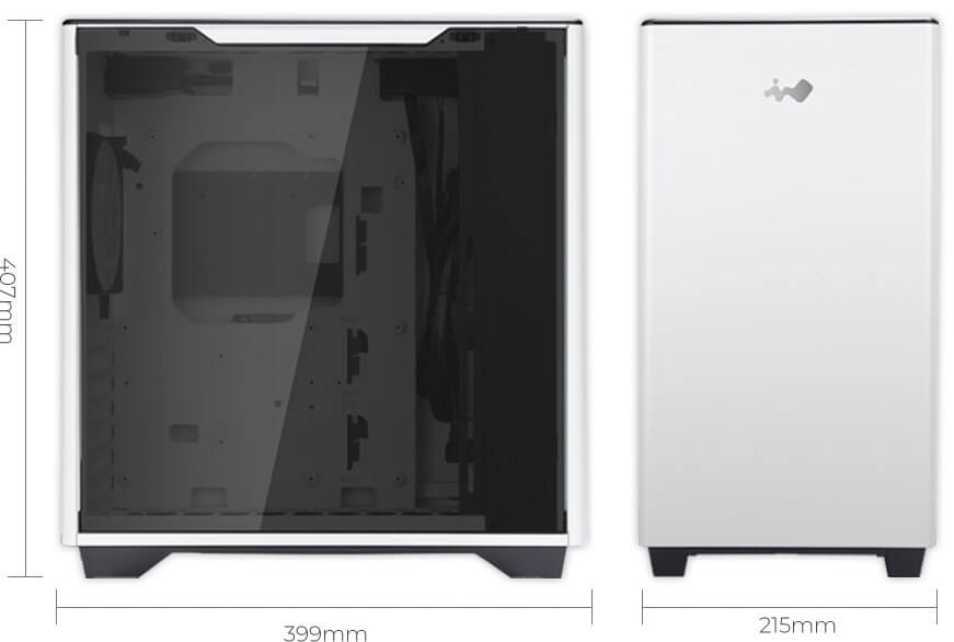 トップとボトムはメッシュ仕様、電源ユニットはフロント部への配置となるよう設計されているため、ボトムからトップへかけてのスムーズなエアフローが実現。トップには240mmラジエーターも設置可能です。また、リアにはIN WINの薄型ケースファン「Mercury AM120S」を1基標準搭載しています。