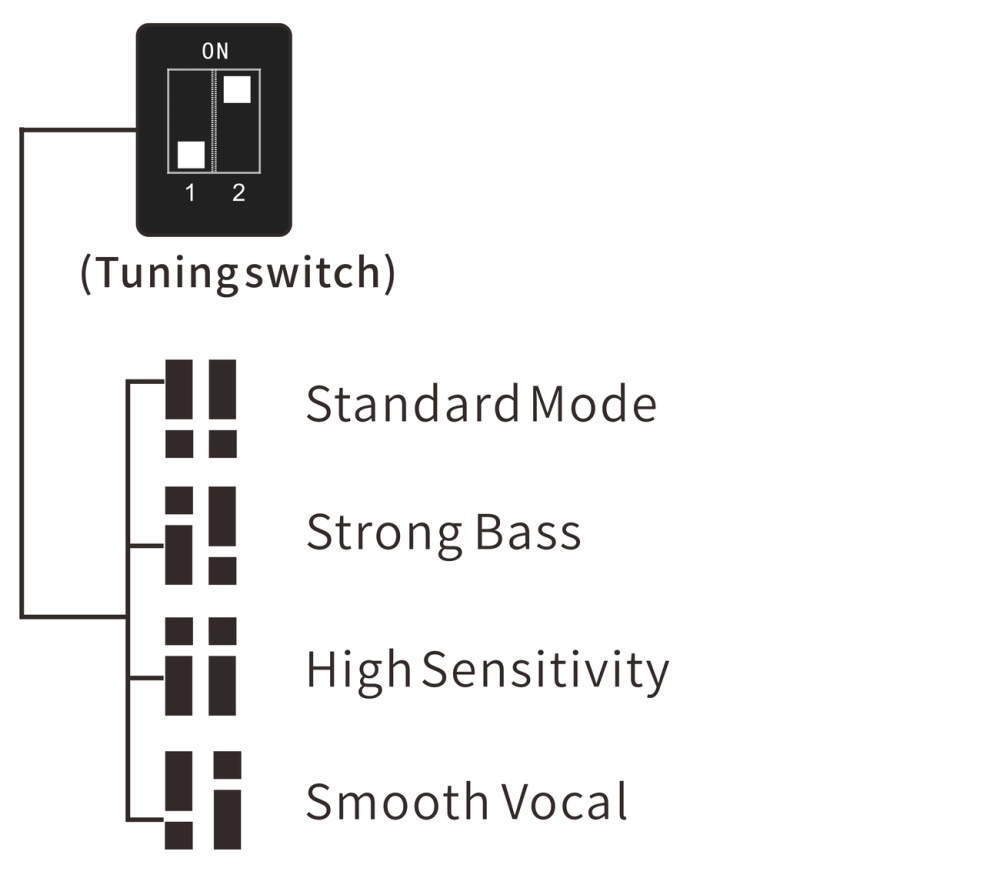 qdc独自のチューニングスイッチ・テクノロジーを採用。Anole V3 II-Cは2つのチューニングスイッチを搭載し、低域、中高域を変化させ、合計4種類の音色を歪みなく楽しむことが可能です。