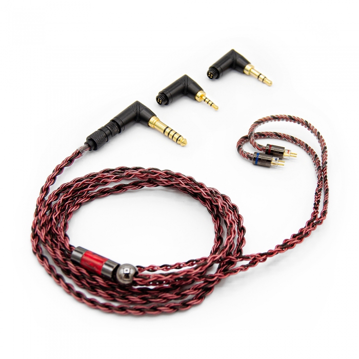 『RUBEUS』(ルビウス)は、超高純度6N OCC(単結晶無酸素銅)線と高純度4N銀メッキ銅線による8芯構造を採用。ボーカル帯域から中低域を中心に豊かでダイナミックな音質へと強化し、全体的な透明感と広がりのある音場へ変化させます。それぞれの線材は「Lumi Flex™加工」が施され、インピーダンスを大幅に低減し、電流の最適な伝送を可能にしつつ、紫外線による劣化を抑えます。また、代名詞的なLuminox Audioならではのしなやかな取り回しの良さも確保しています。プラグ部には3.5mmアンバランスと2.5mm/4.4mmバランス接続が簡単に切替可能なL字タイプ3in1マルチプラグを採用。そして、独自のPair Balancing Technology(ペア・バランシング・テクノロジー)による、さらなる高純度伝送を実現します。コネクター種類