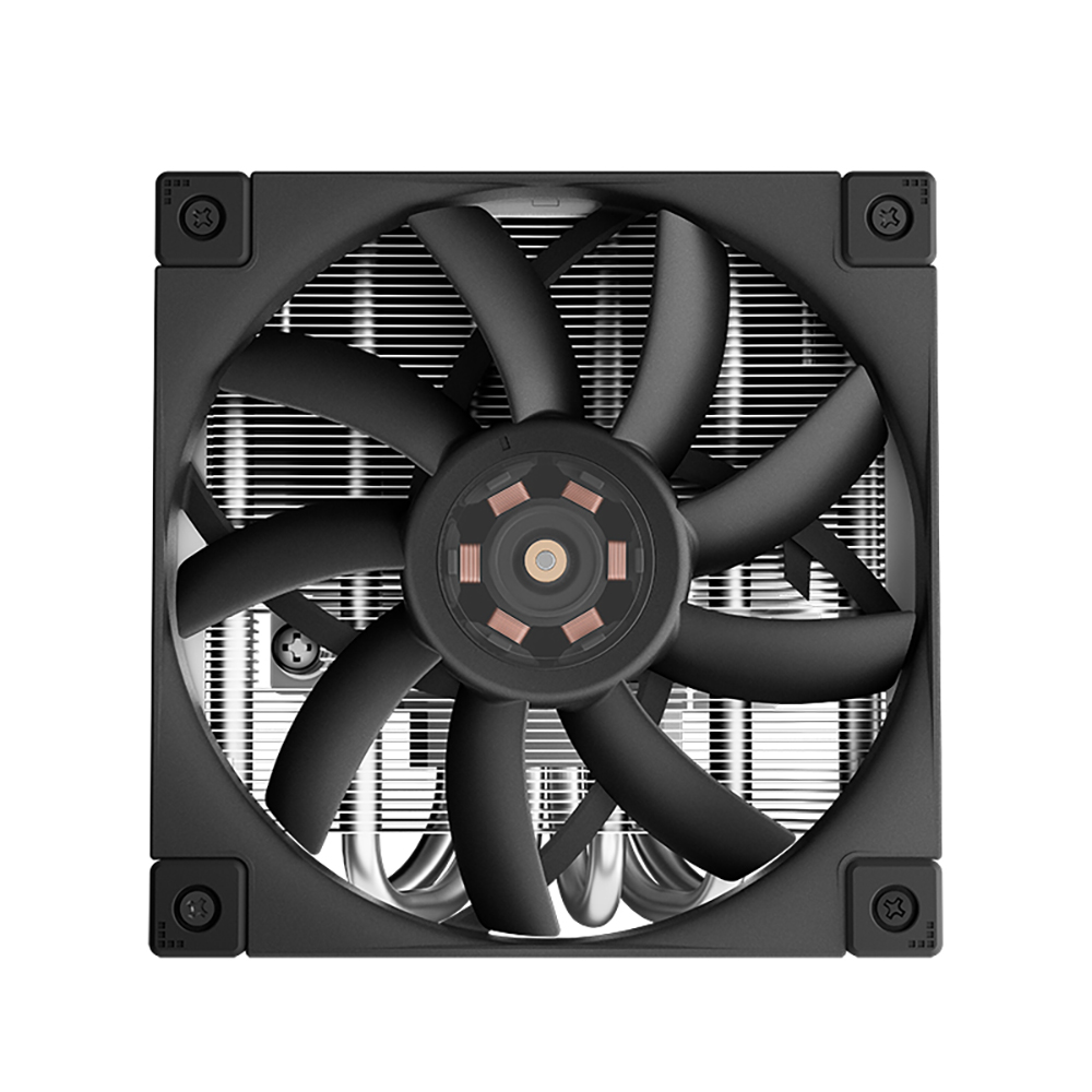 62枚のアルミニウムフィンで構成されたヒートシンク、厚さ15mmの薄型ファン、6本の6mm径ヒートパイプ、銅製ベースプレートの組み合わせにより、小型ながら最大180WのTDPに対応する高い冷却性能を発揮します。また、トップダウン型のエアフローを最大限に活用し、大量の空気を取り込んでCPU、VRM、メモリーまで冷却します。
