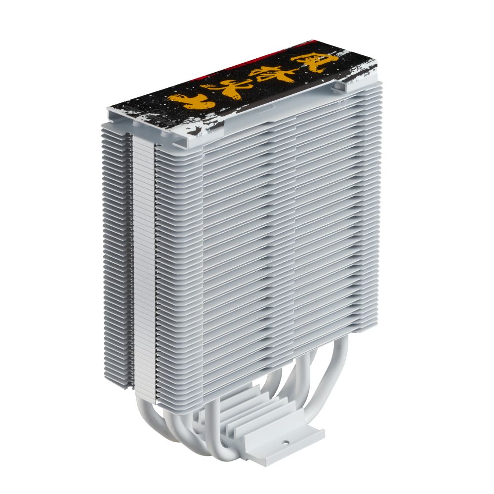 ホワイトカラーでコーティングされた4本のヒートパイプに、デュアルループARGBの美しいライティング機能に加え、前モデルから性能が向上した新型「MF120 HALO²」ファンを搭載し、すっきりとした白色に統一されています。