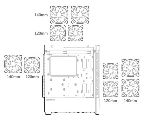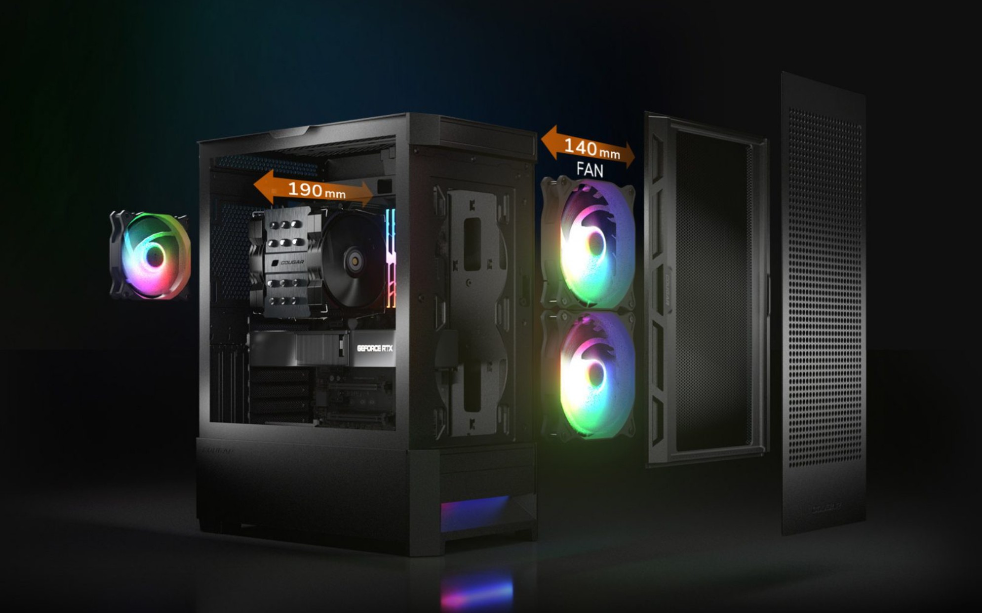 DUOFACE RGBは最大5基のファン、280mmラジエーター、190mmのCPUクーラーを搭載することが可能で、発熱が大きいハイエンドシステムを強力に冷却することができます。