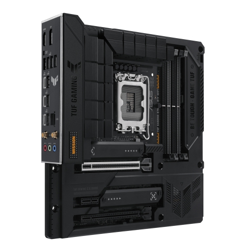 「TUF GAMING B760M-BTF WIFI」は、Intel B760チップセットを搭載し、背面コネクターデザインを採用した「BTF」シリーズ・「TUF GAMING」MicroATXマザーボードです。DDR5メモリーに対応しています。