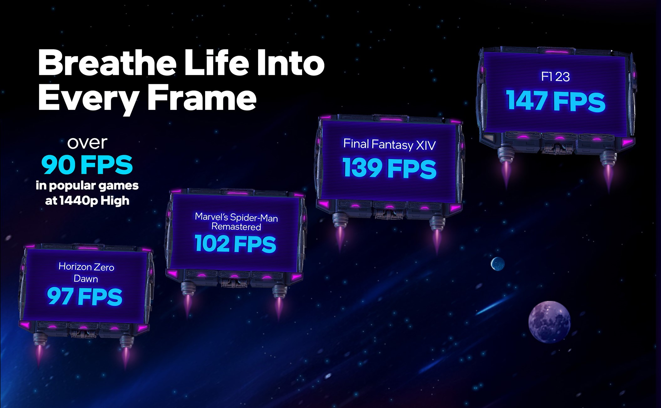 高解像テクノロジー「XeSS」や、グラフィックスAPI「DirectX 12 Ultimate」を備えるインテル® Arc™ 7 グラフィックスが、クリエイターやゲーマーの映像体験を加速させます。
