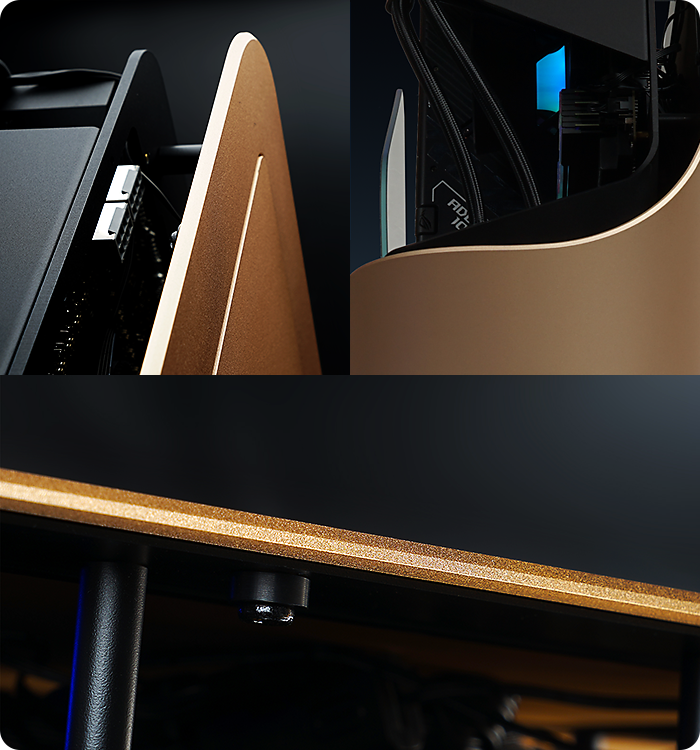 高温下でガラスの曲面ラインをアルミニウム構造の位置とぴったりと揃えるには、多大な努力と技術が必要です。InWinの巧みなクラフトマンシップがそれを可能にしました。