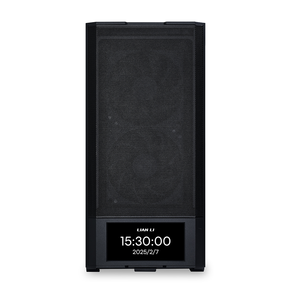 「LANCOOL 207 DIGITAL」最大の特徴はフロント下部に6インチのディスプレイを搭載したことです。解像度:720×1600px、リフレッシュレート:60Hz、輝度:500nitsのミニディスプレイは、システムの情報をリアルタイムに表示することができます。表示デザインは豊富なテンプレートから選択することができ、専用ソフトにより、さらなるカスタマイズが可能です。