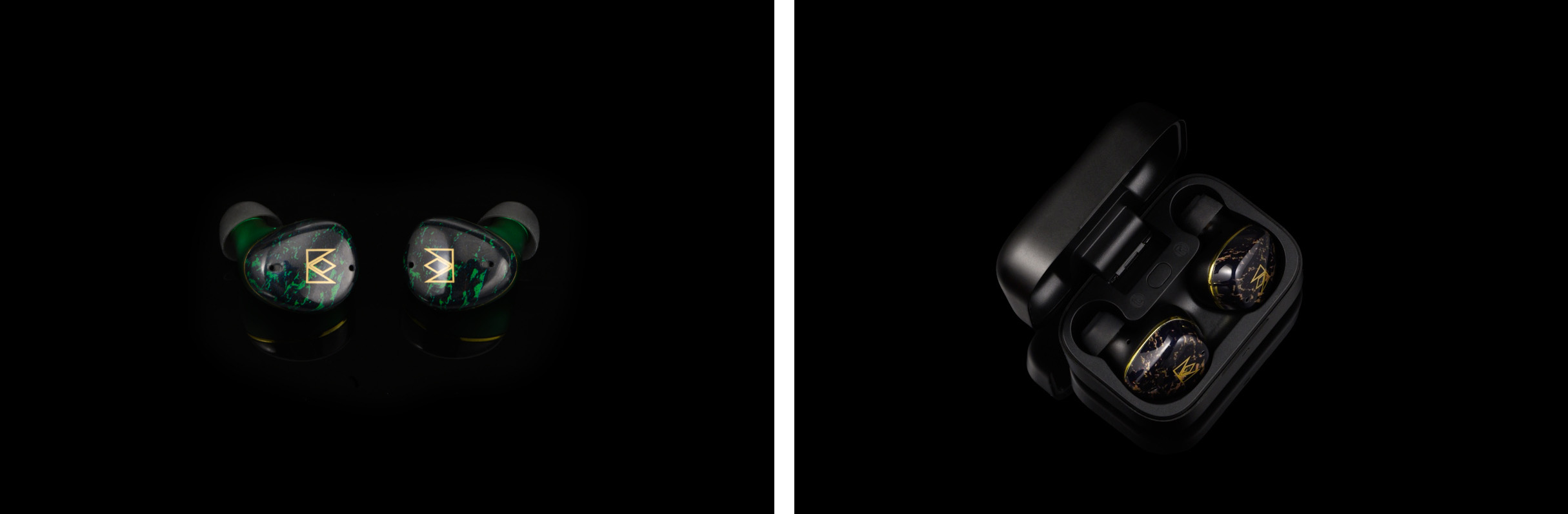 Rex5のカラーはBMW M3に由来し、若々しさ、スポーツ性、ファッション性を表現しています。IEMのアルミニウムハウジングは内部部品に金属的な環境を提供し、共振抑制により音のディテールを向上させます。フェイスプレートのパターンは大理石のデザインにインスパイアされています。アルミニウム製の充電ケースは高品質な質感を与え、底部が金属でないためワイヤレス充電にも対応しています。
