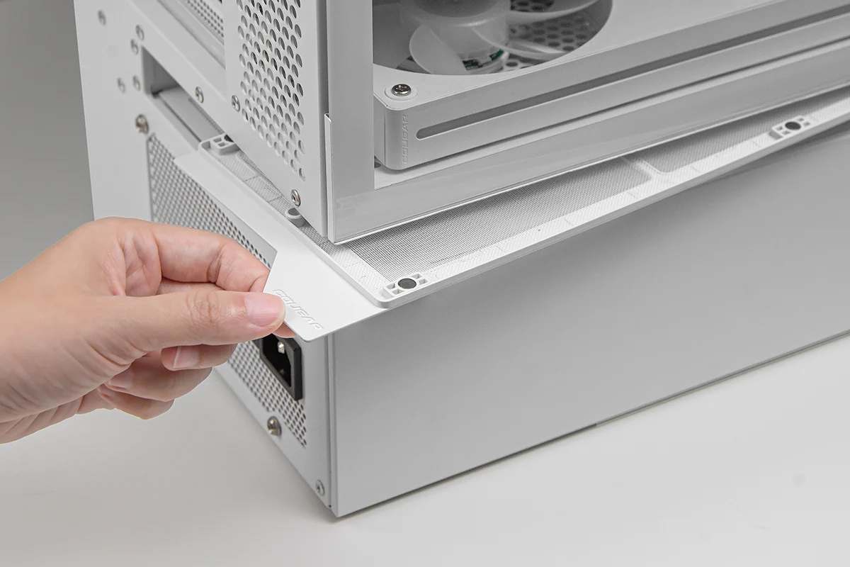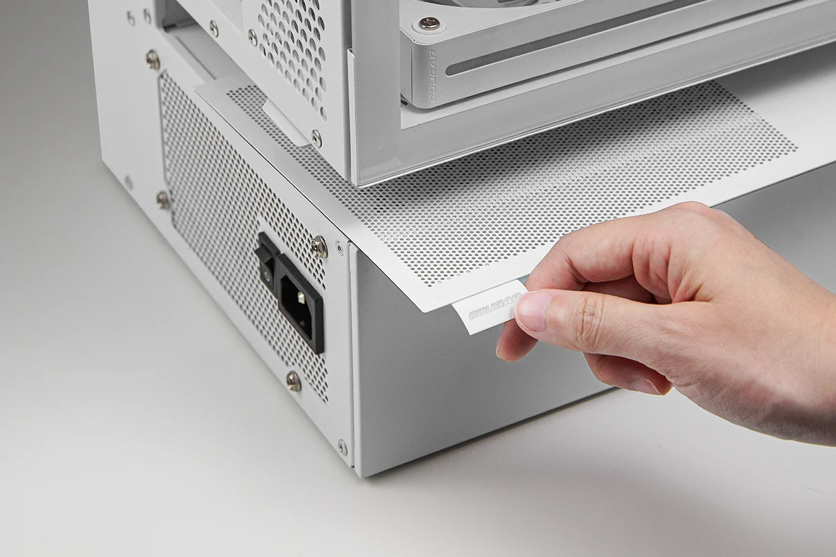 メインチャンバーと電源ユニットを収納するキャビン、上下エリアそれぞれにマグネット式のダストフィルターを設置しています。ダストフィルターにはつまみが付いているので取り出しやすく、フィルターのメンテナンスが容易です。