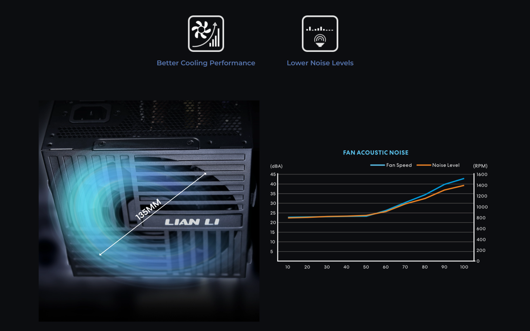 標準の120mmファンよりも大型の135mm HYBスマート温度制御ファンを搭載した本電源ユニットは、低回転時でも優れた冷却性能を発揮します。この設計は放熱性を向上させるだけでなく、ノイズレベルを低減し、日常的なタスクでは効率的で静かな冷却を実現し、高負荷時でも安定した動作を実現します。