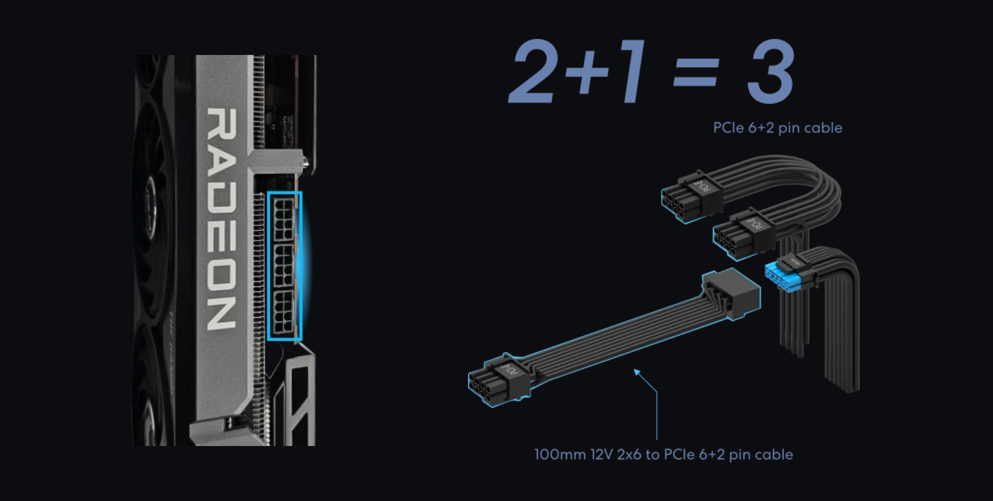 750Wモデルには、100mm 12V 2×6 to PCIe 6+2ピンケーブルが付属し、ハイエンドAMD GPU用の8ピンコネクタを合計3つ備えています。この柔軟性の高さにより、要求の厳しいユーザーにとって将来を見据えた選択肢となります。