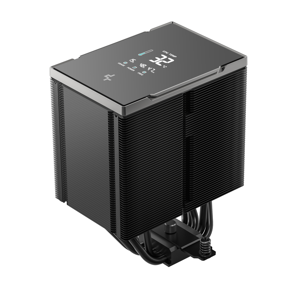 4つのセグメント(CPU温度、使用状況、消費電力、周波数)をモニタリング可能なLCDを天面に搭載。USB 2.0ヘッダーに接続することで専用ソフト「DeepCreative」により制御可能です。CPU温度に応じて、左側のインジケーターが段階的に色を変化させる警告機能も備えています。