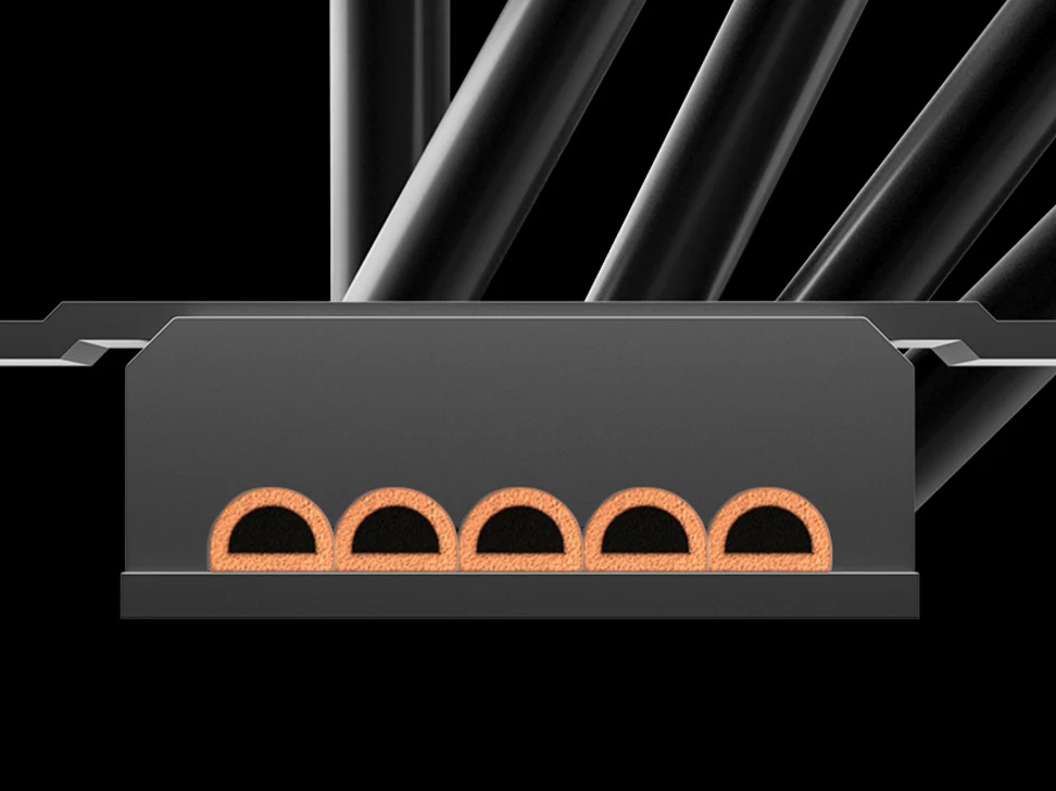 ・隣接するヒートパイプ間の接触面積を増やし、熱伝導を促進。冷却性能をさらに強化