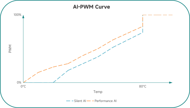 AIスマートモードでは、DeepCreativeソフトウェアがファンカーブをもとに、負荷状況に応じてアルゴリズムで動作を自動調整します。