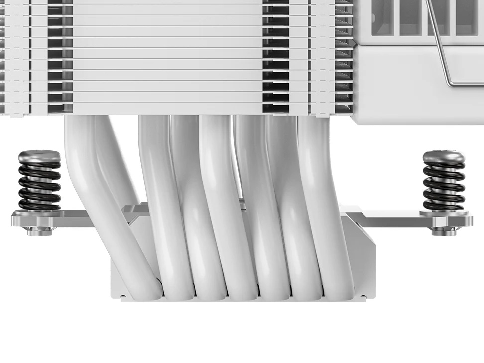 精密加工された銅製ベースと 7本の銅製ヒートパイプ、冷却フィンを高密度に配置したマトリックスデザインのシングルタワー型ヒートシンクを組み合わせ、高い冷却性能を発揮します。ファンやヒートシンク、ヒートパイプはブラックまたはホワイトカラーで整えられています。