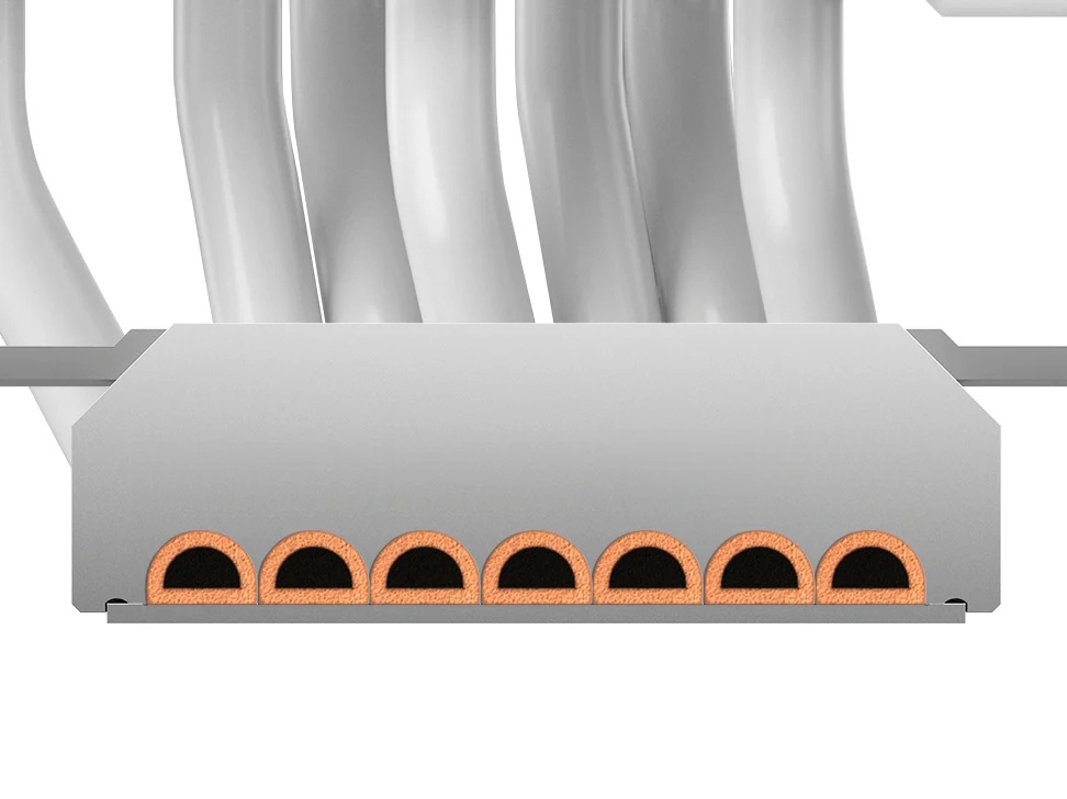 ・隣接するヒートパイプ間の接触面積を増やし、熱伝導を促進。冷却性能をさらに強化