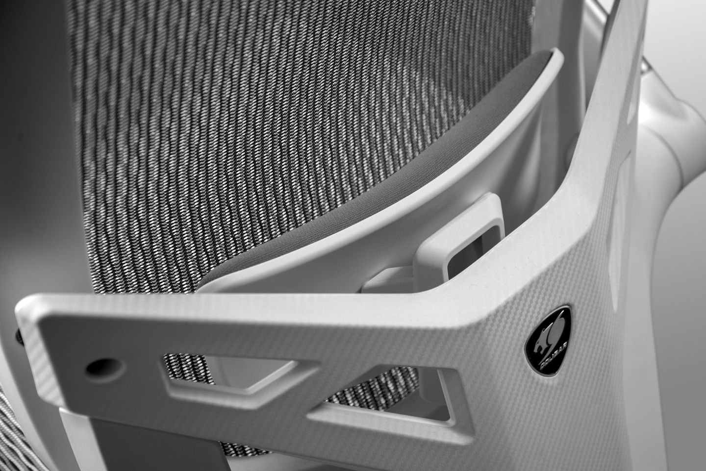 エルゴノミクスの観点から設計されており、自然なカーブを描く背もたれや座面、ランバーサポートやアームレスト、ヘッドレストは細かな調整が可能。背もたれや座面は快適なメッシュ素材を採用しています。