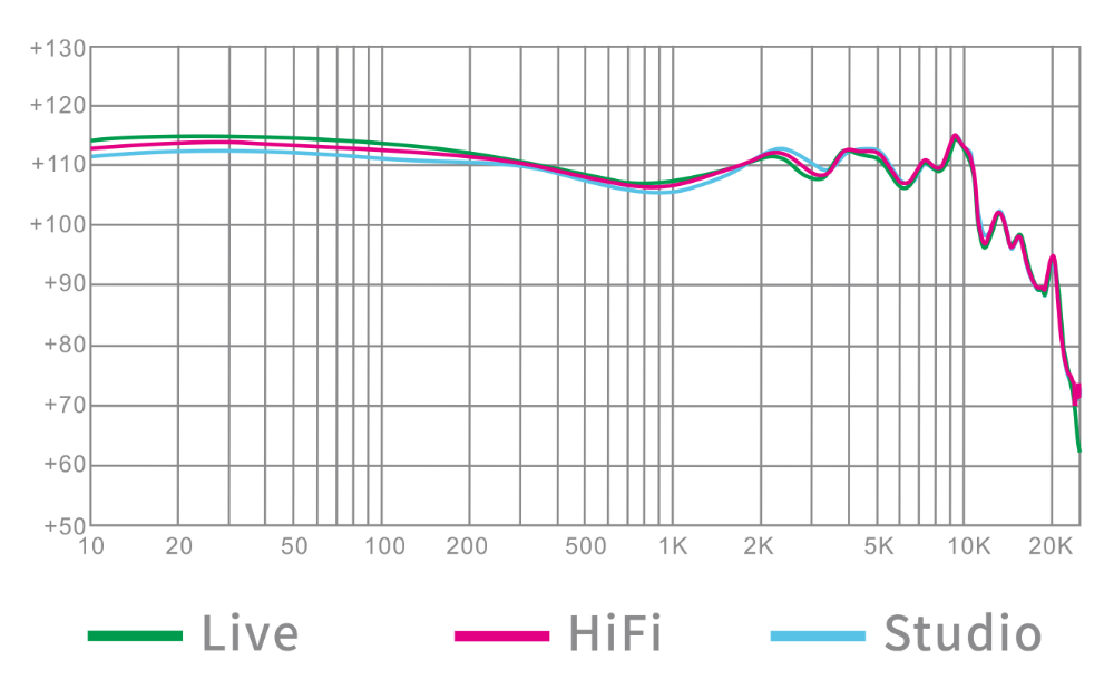 4Pro-Cは、独自テクノロジーであるシングルロッド連動フィルターを採用し、マルチユースに対応。リスニング用の「Hifi」/スタジオモニター用の「Studio」/ライブモニター用の「Live」の各プロユースサウンド傾向を1つのスイッチで切り替え可能にしつつ、音のバランス、低域の沈み込み、高域の伸び、音域の拡大などの改善を実現しました。ユーザーに多次元的な体験と極めてシンプルな操作性を提供します。