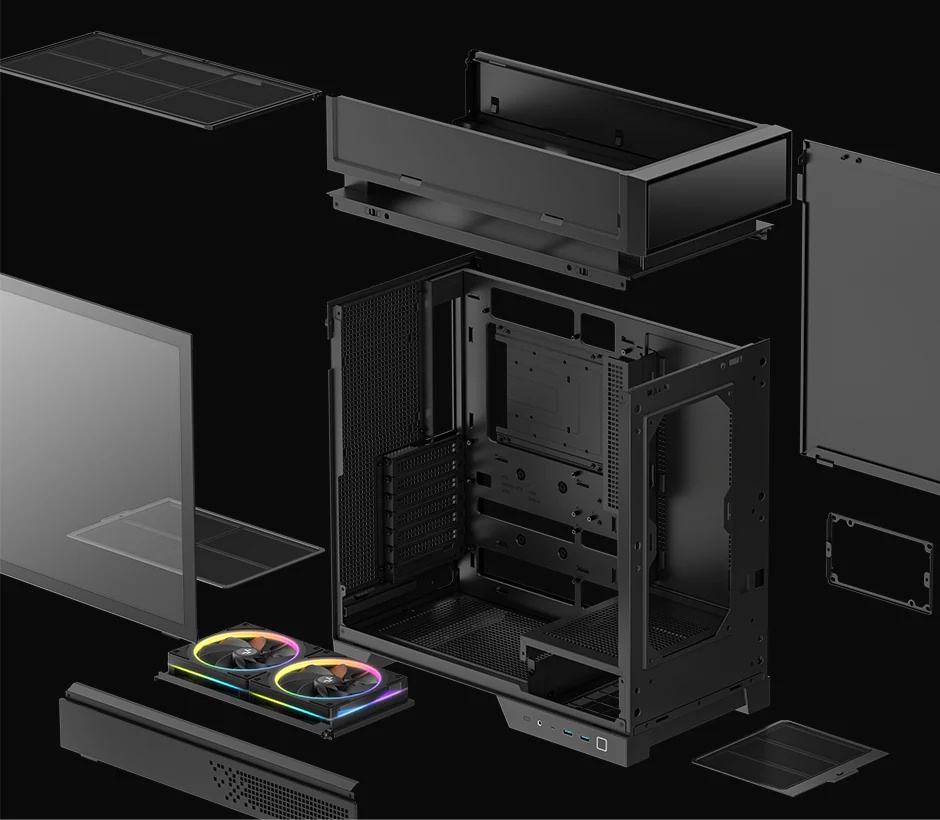 各パネルは工具不要で着脱可能で、組み立てやアップグレードをスムーズに行えます。ボトムファンブラケットは完全に取り外し可能で、ファンのメンテナンスを容易に行えます。.jpg)