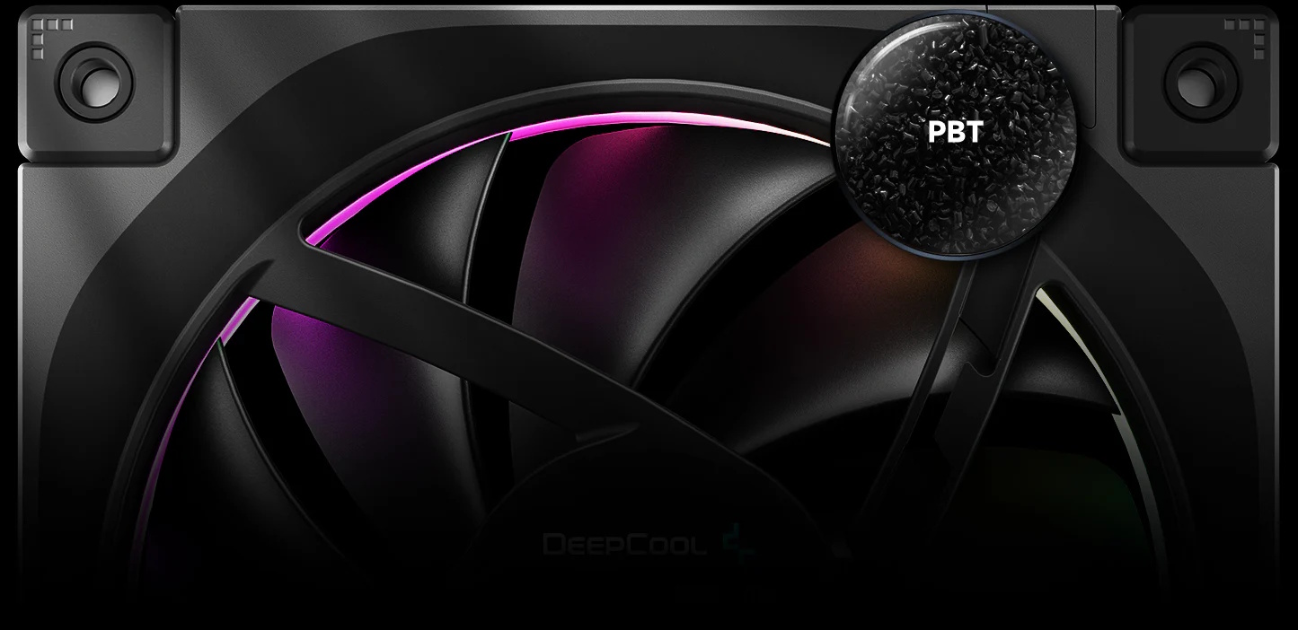 ファンブレードとフレームには、強化されたPBT複合素材を採用しています。ファン全体の構造強度と動的バランスをさらに向上し、長寿命と信頼性を両立しています。