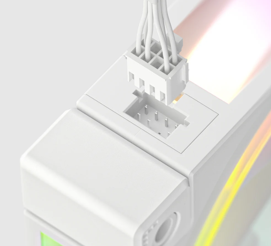 PWM制御とARGB同期を統合した8ピンコネクターを採用し、取り付けが簡単で安全性も向上しています。さらに、四隅に設置された全面ゴムパッドが、ファンの振動を最小限に抑え、不均一な取り付け圧による騒音を軽減します。