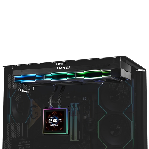 最大3200RPMのパフォーマンスを発揮するポンプを内蔵しており、冷却性能を強化。ラジエーターは24mm厚の薄型360mmラジエーター(400×122×24mm)を搭載しており、さまざまなケースとの互換性が高く、改良されたブラケットにより、取り付けも容易です。また、ラジエーター側面に専用クリップにてチューブを固定することで、すっきりとした外観を保ちます。