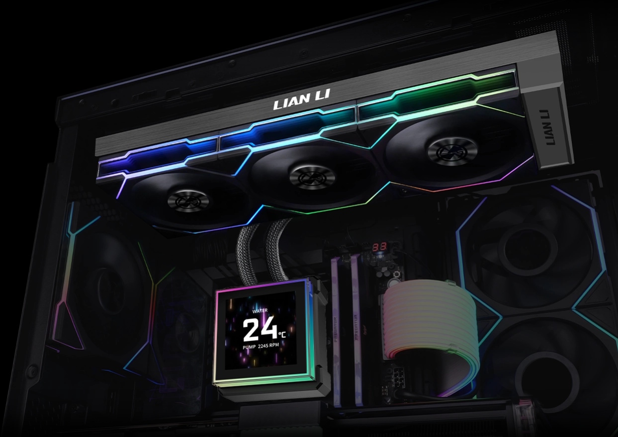 LIAN LI「HydroShift II LCD-S」シリーズは、水冷ブロックに3.4インチIPS LCD ディスプレイ (480×480、500 nits、60 Hz) を搭載する水冷クーラーです。水冷ブロックにはマグネット式のコネクタを採用し、電源を切ることなくディスプレイを固定できる仕様のため、システム組み立て後の取り付けも簡単です。LIAN LIのソフト「L-Connect 3 」を使用することで、システムの設定やモニタリングでけでなく、ディスプレイの表示をカスタマイズすることが可能です。
