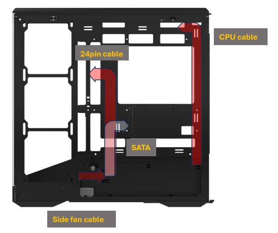 フロントと左サイドパネルに4mm厚 強化ガラスを装備し、270°のパノラマビューを展開。背面コネクターマザーボードに対応し、また、全体的にケーブル管理が容易なため、内部をすっきりと見せることができます。左サイド下部にはARGB LEDストリップを内蔵しており、内部ドレスアップにアクセントを加えます。