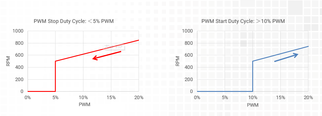 | PWMデューティサイクル | <5% PWM(PWM停止デューティ比) >10% PWM(PWM起動デューティ比) |